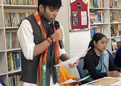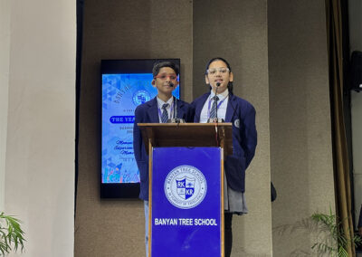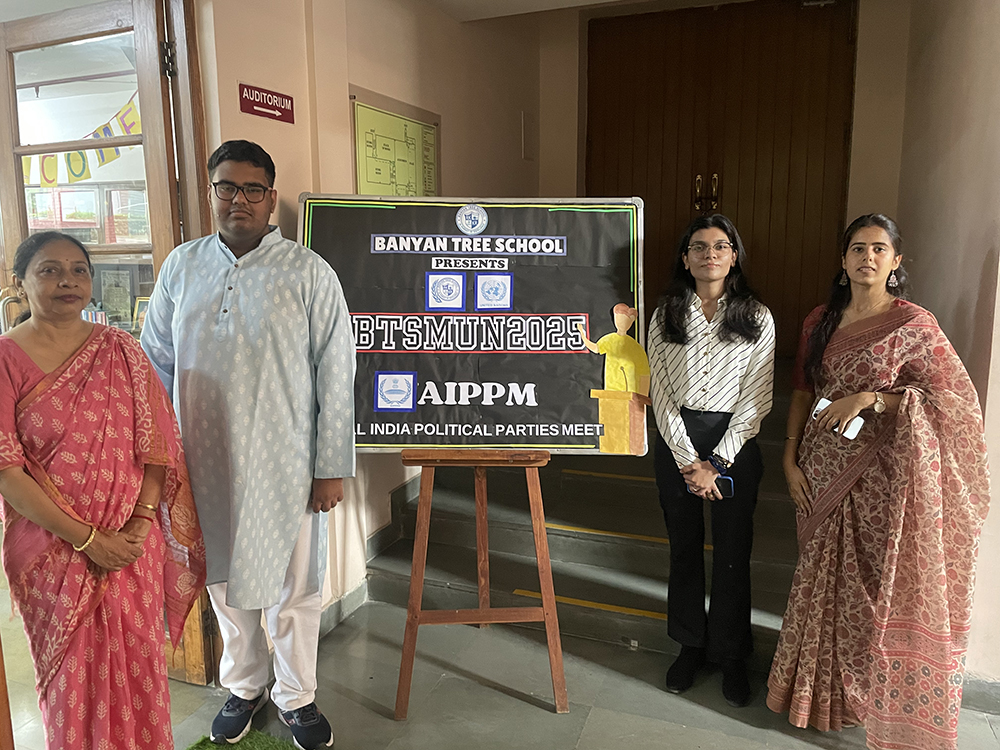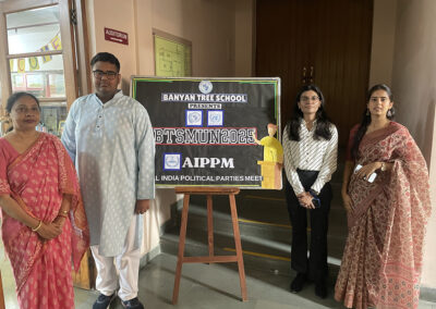 On July 25, 2025, the Banyan Tree School library was charged with energy as students participated in the Intra BTSMUN All India Political Parties Meet (AIPPM). Tasked with debating the Uniform Civil Code, delegates stepped into the roles of political leaders to navigate the complexities of India’s diversity and national integration. The event was graced by alumna and guest speaker Ms. Ishita Sharma, who inspired the participants to lead with courage and listen with an open mind.
