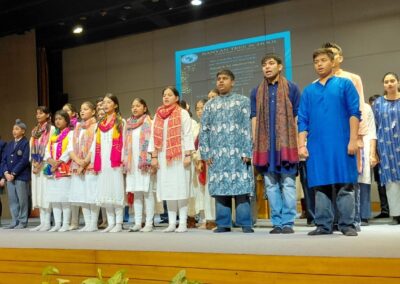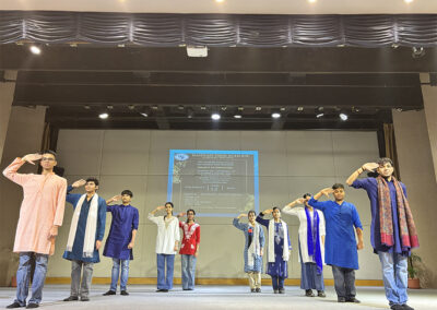 The celebrations continued the next day in the school auditorium, adorned with tricolour decorations and symbols of India’s freedom struggle. The programme began with a graceful Ganesh Vandana dance, followed by a melodious performance by the school choir, whose patriotic songs stirred deep emotions.A powerful skit depicted pivotal moments from the freedom struggle, honouring the courage and sacrifices of great leaders and revolutionaries. Energetic and expressive dance performances captured scenes from India’s historical journey to independence, while impactful speeches and inspiring quotes reflected students’ love for their motherland.The celebration concluded with the collective singing of the National Anthem, uniting the entire school community in pride and respect for the nation. Across both days, the efforts of the teachers, dedication of the students, and support of the parents made the programmes a resounding success — reminding everyone of the sacrifices made by our freedom fighters and inspiring all to work towards a stronger and better India.