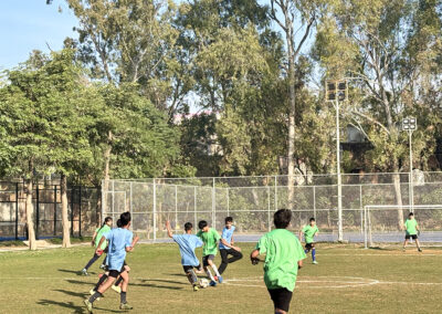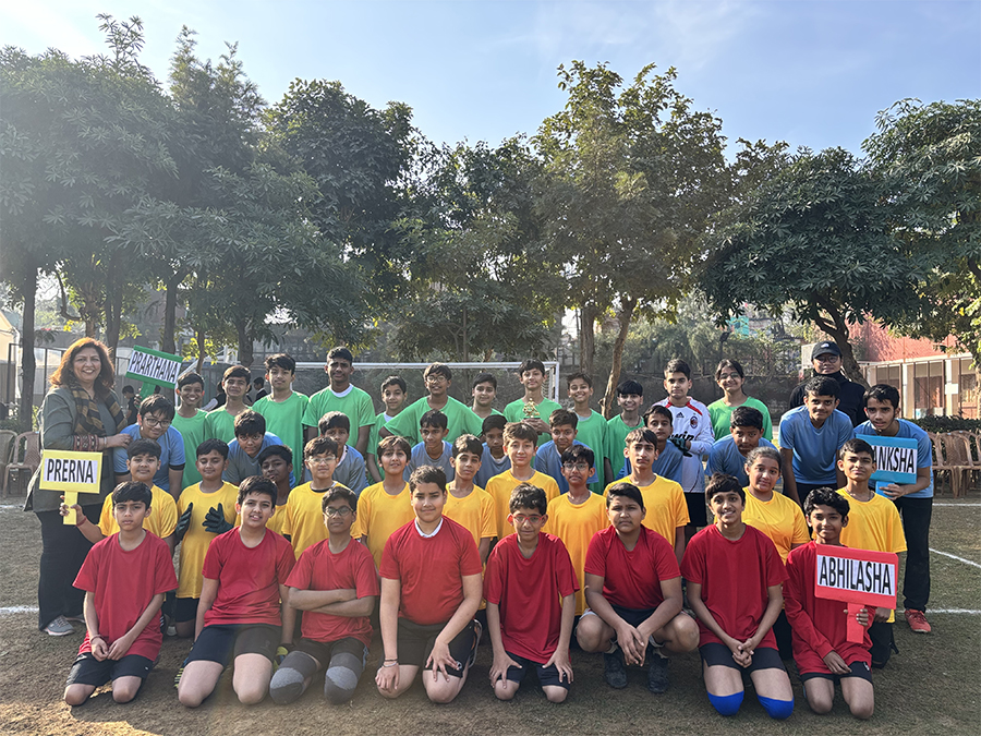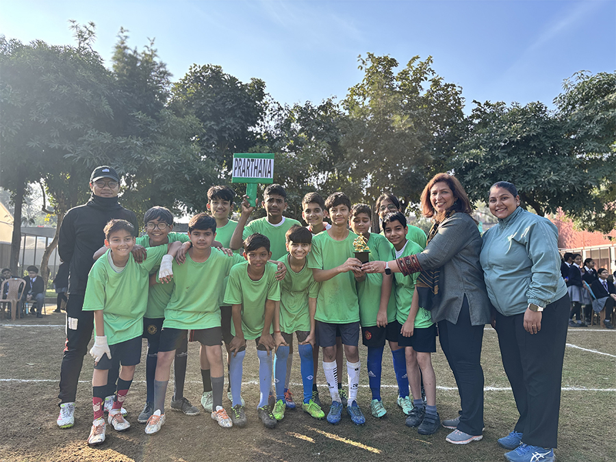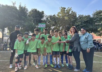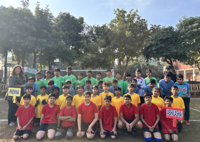 houses—Akanksha, Abhilasha, Prerna, and Prarthna—showcasing discipline, teamwork, and healthy competition throughout the league. After consistent performances across all fixtures, Prarthna House emerged as the overall winner, securing the 1st position, while Akanksha House claimed the 2nd position, Prerna House finished 3rd, and Abhilasha House placed 4th. The closely contested matches, including the third-place encounters and the final, kept the playground vibrant with cheers and strong house spirit, and the event successfully promoted physical fitness, leadership, unity, and sportsmanship, making it a memorable sporting highlight for the Middle Wing and the school community